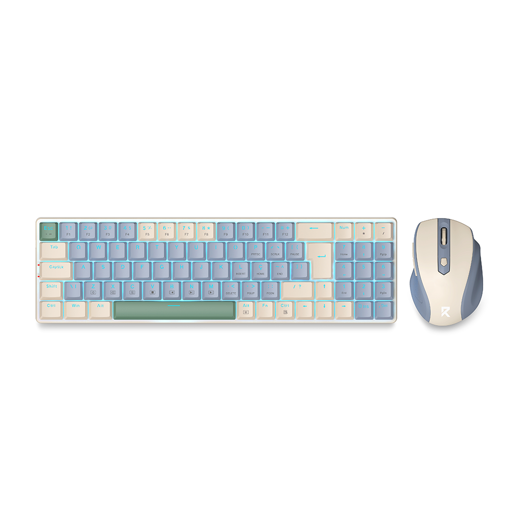 Kit Mouse e Teclado Mecânico Sem Fio Redragon Creme e Azul
