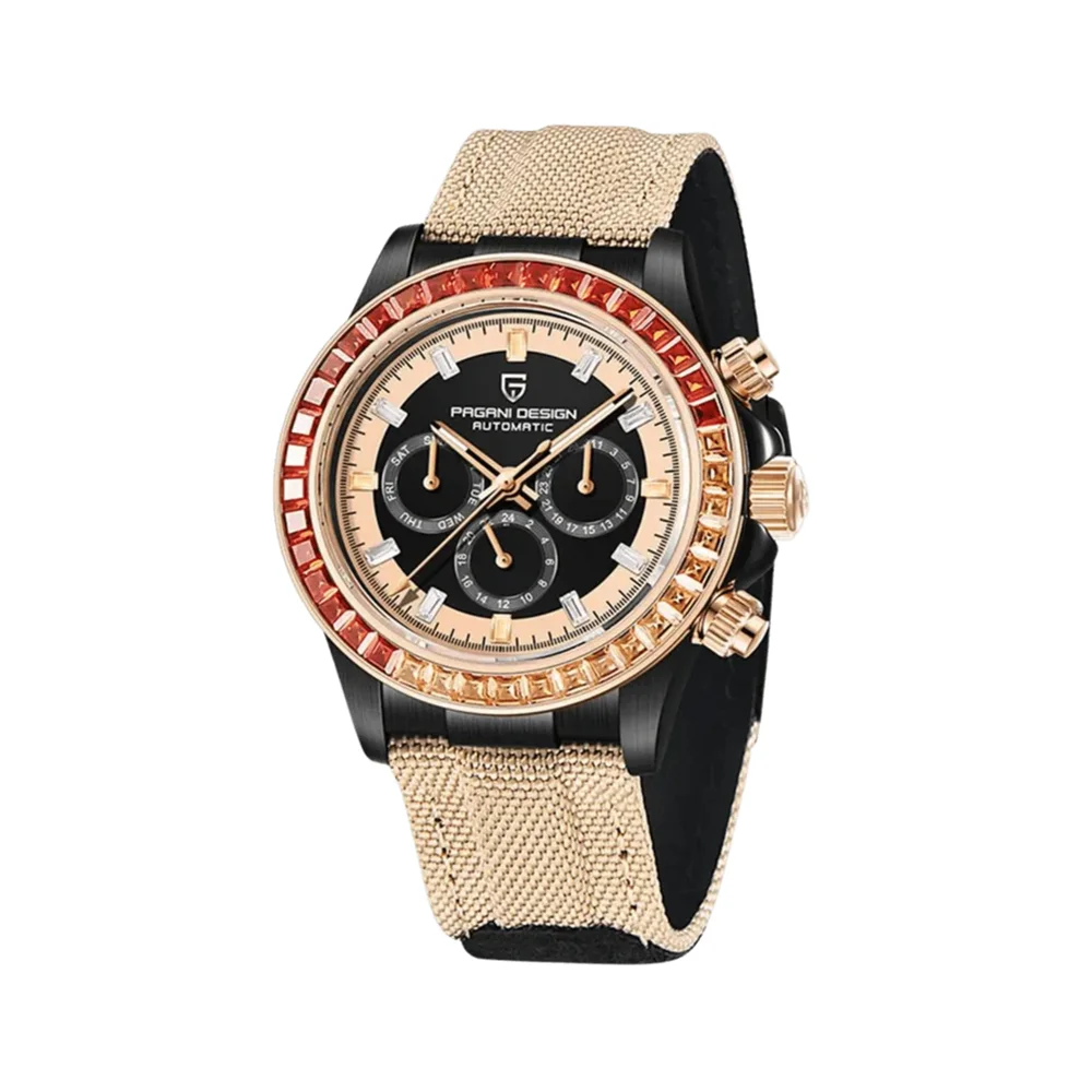 O relógio automático de luxo PAGANI DESIGN é uma prova de um acabamento impecável, oferecendo uma aparência sofisticada e movimento automático de corda automática.